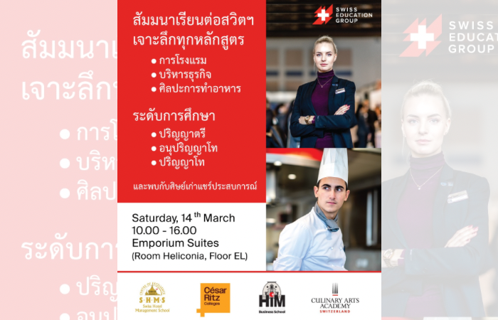 🇨🇭 เรียนเชิญเข้าร่วมอีเวนต์ “เรียนต่อประเทศสวิตเซอร์แลนด์ และพบกับศิษย์เก่าจาก 4 สถาบันในเครือ Swiss Education Group” 👩🎓👨🎓
